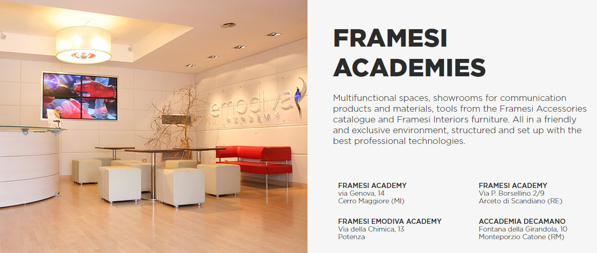 在更注重發展的沙龍,Framesi 已成立了三個院校為其客戶提供一個專業教育的場所。