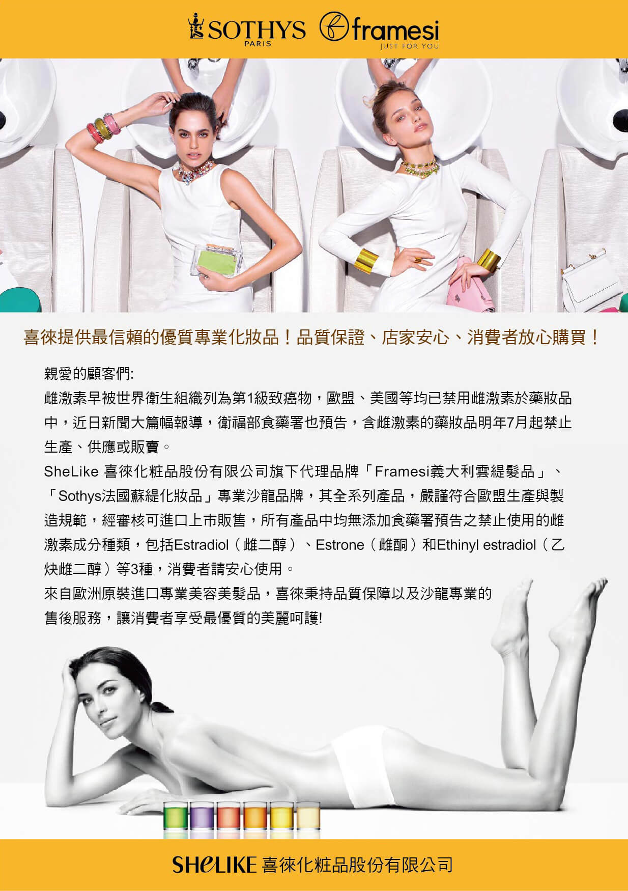 喜徠化粧品公司產品聲明
